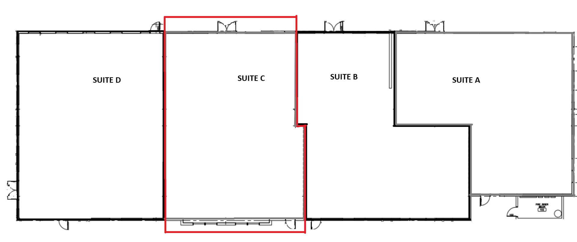 The building is currently designed with 4 spaces as shown in the attached floor plan, and units may be combined. Spaces to be provided in shell condition defined as concrete floors, insulated walls, open ceilings, 200-amp electrical panel, private restroom, fire sprinklers, alarm system, and HVAC trunk lines stubbed into each space.