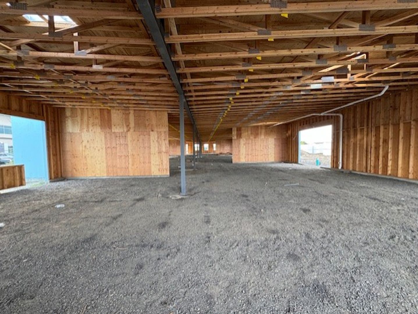 The building is currently designed with 4 spaces as shown in the attached floor plan, and units may be combined. Spaces to be provided in shell condition defined as concrete floors, insulated walls, open ceilings, 200-amp electrical panel, private restroom, fire sprinklers, alarm system, and HVAC trunk lines stubbed into each space.