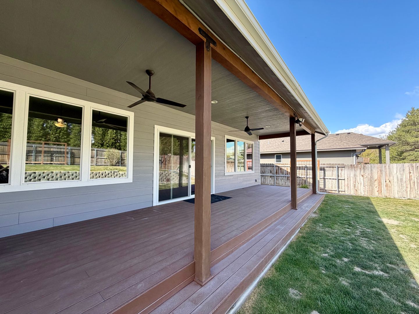 This gorgeous home offers 3 bedroom + office, 2.5 bath on the main level with an oversized bonus bedroom upstairs. Granite countertops, along with wood grain flooring enhance the style. The kitchen and dining area are open to the spacious great room allowing plenty of space to entertain. The primary suite includes an ensuite bath offering double vanity sinks, an oversized soaking tub, separate shower, and walk in closet. The dining area opens up to the outdoor extended covered patio. The landscaped yard offers a private fenced backyard. You'll appreciate the laundry room which includes a utility sink and washer/dryer. The 2 car garage has plenty of parking space along with storage areas. As if all of that wasn't enough, this home has designated RV parking on the side of the home. This gorgeous home offers it all!