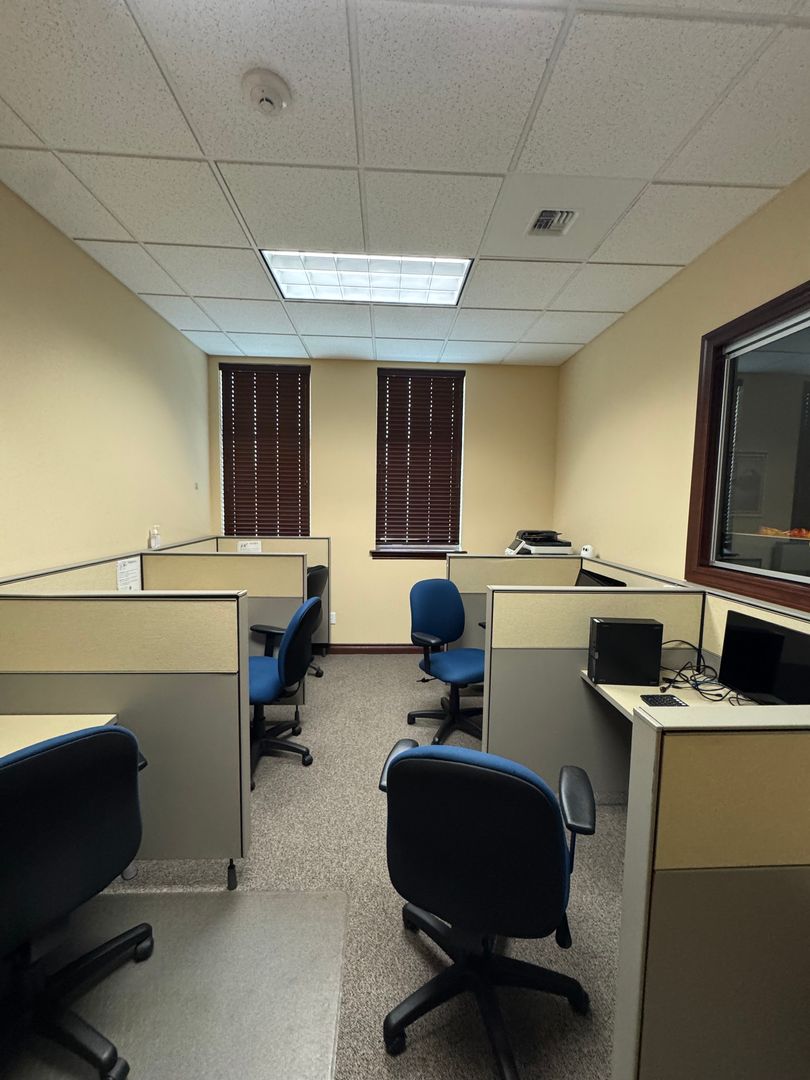 Suite C offers a functional and professional layout designed to support both client interaction and daily operations. The space includes four private offices, along with a convenient waiting area for guests. An open reception/work area provides flexibility for administrative staff and adjacent there is a dedicated data/storage room. There is a large kitchenette & break room.
