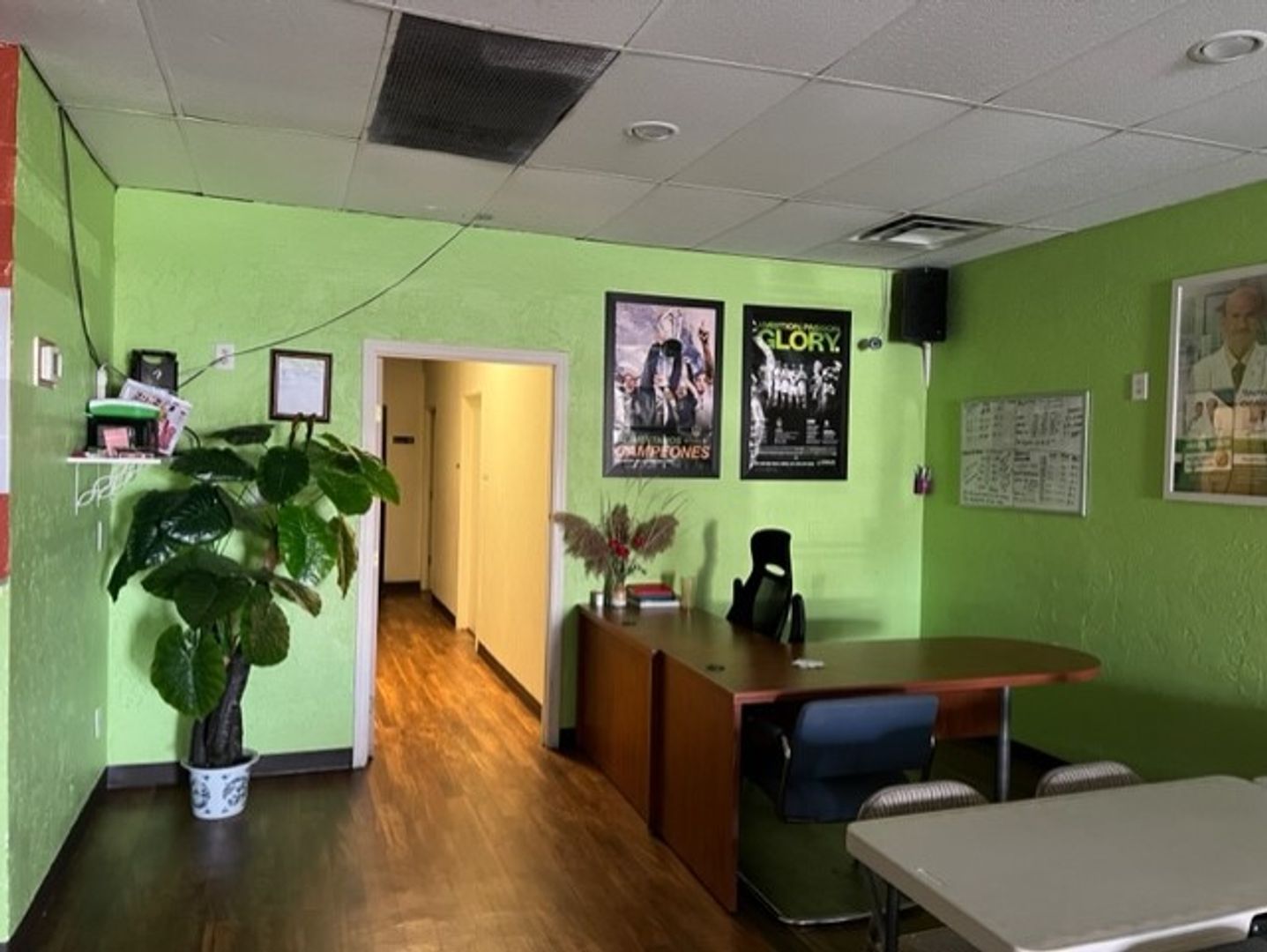 Suite 105 has an open layout with a private office. Please see the attached floor plan for clarification.