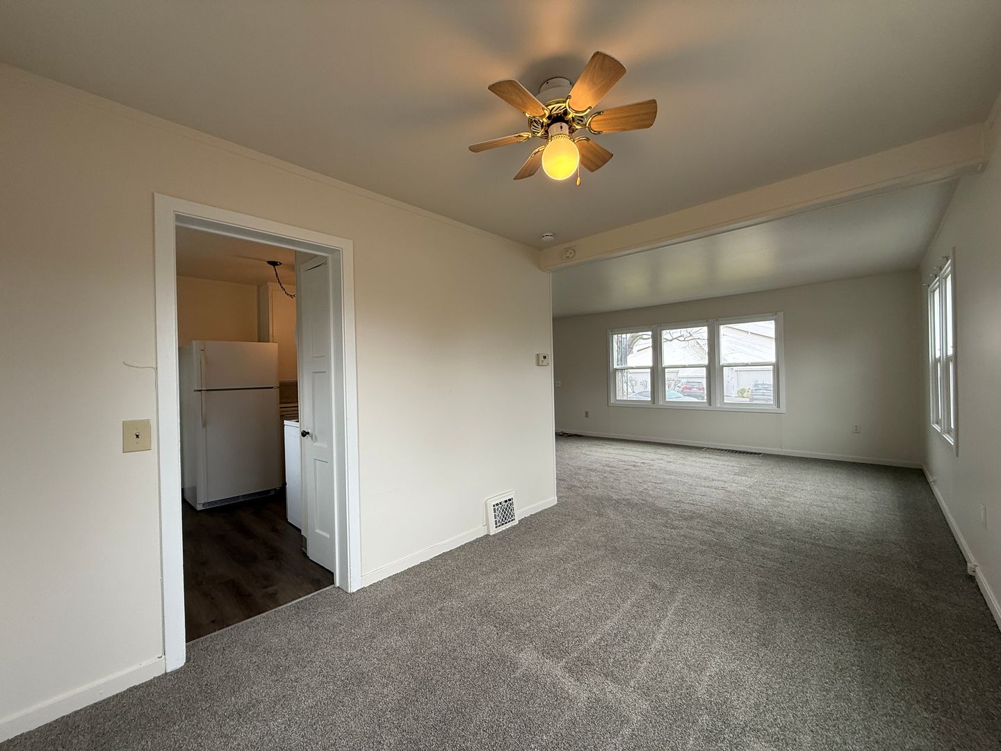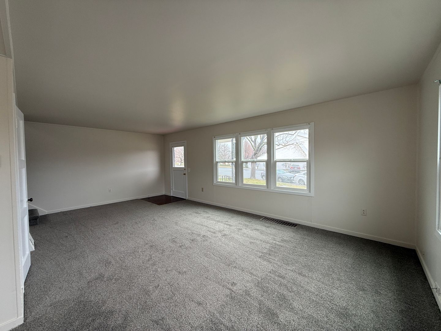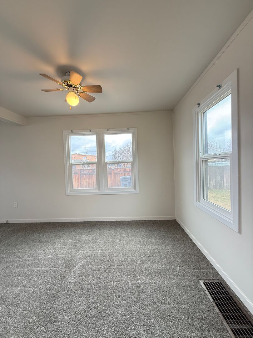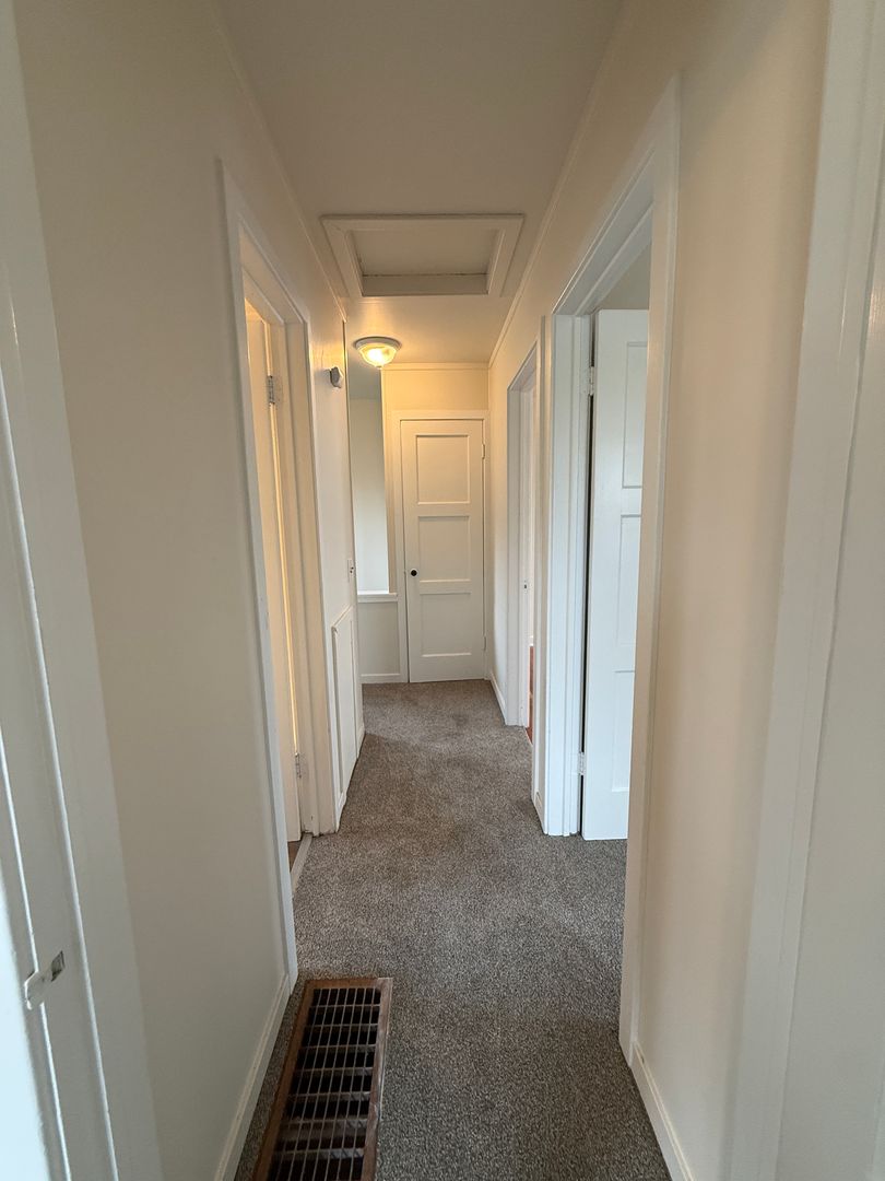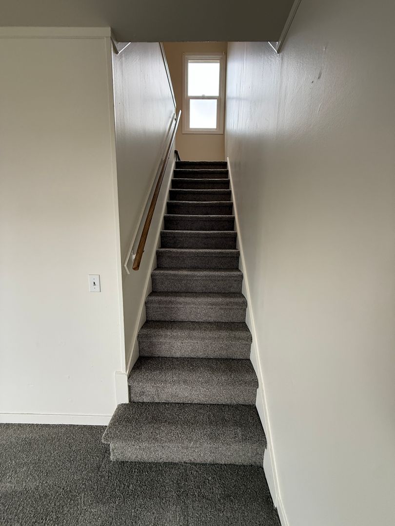 A’ House duplex featuring new interior paint and brand-new carpet throughout. This spacious 3-bedroom, 1-bath unit offers a functional layout with an unfinished basement complete with laundry hookups for added convenience. Enjoy central heating and air conditioning for year-round comfort.