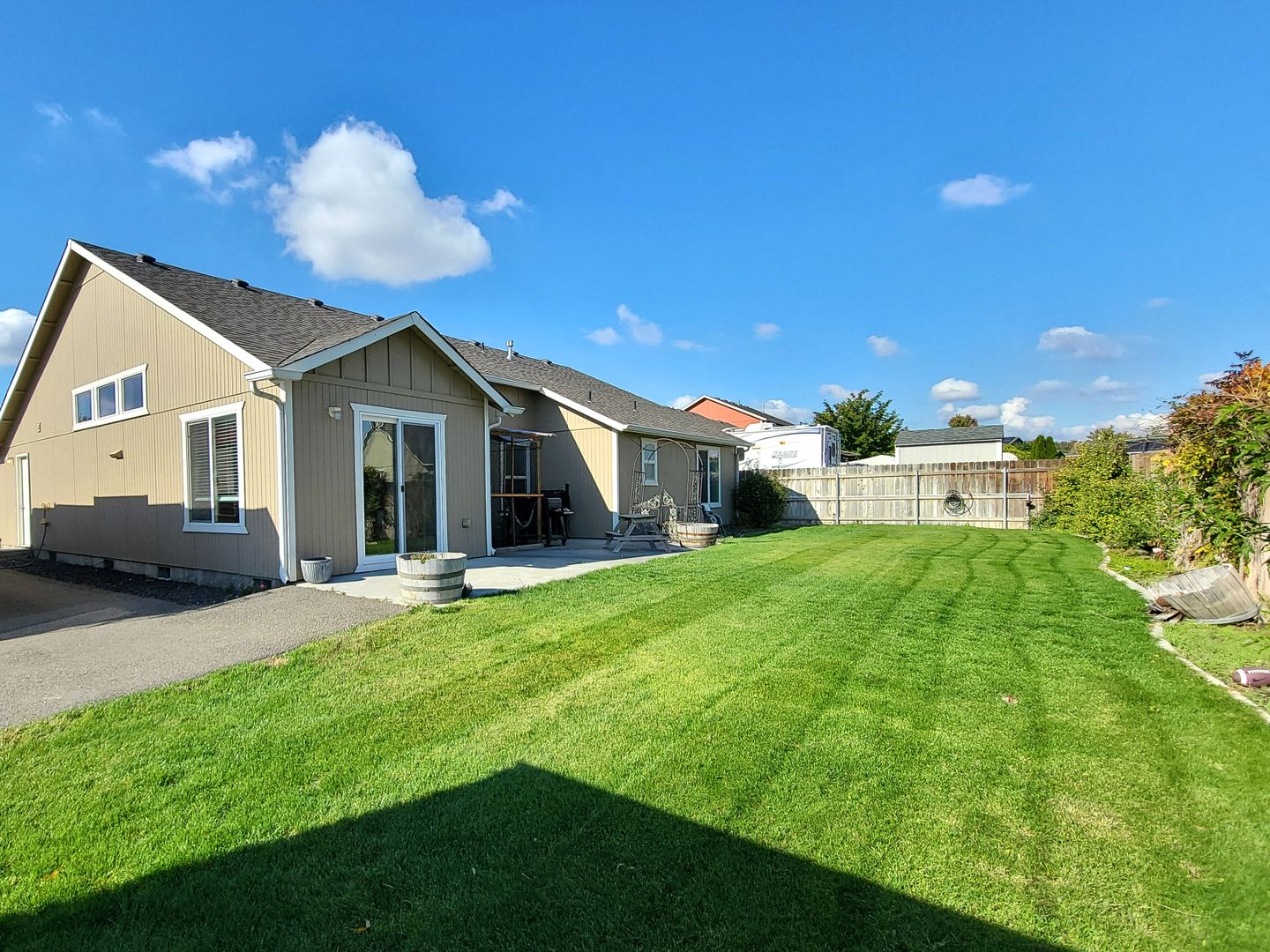 Welcome to the Spacious, Rambler in West Richland, WA. This stunning 3-bedroom, 2-bathroom home is a perfect blend of comfort and convenience. The property boasts a fully fenced backyard, providing a secure and private outdoor space. The underground sprinklers make maintaining the lush greenery a breeze. The home also features a dedicated laundry room with hookups, central air, and gas heat for year-round comfort. The patio is an ideal spot for outdoor dining or relaxation. Inside, ceiling fans add a touch of elegance and functionality. The 2-car garage comes with an automatic opener, offering easy access and secure parking. Additional off-street parking and RV parking are also available, making this home a great fit for those with multiple vehicles or recreational vehicles. Experience the perfect blend of spacious living and modern amenities at this West Richland gem.
