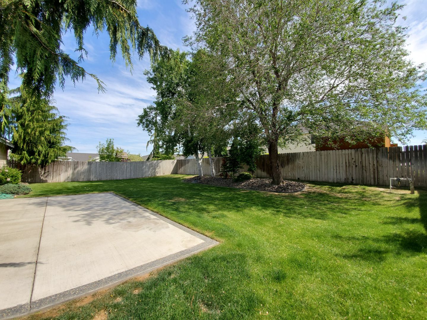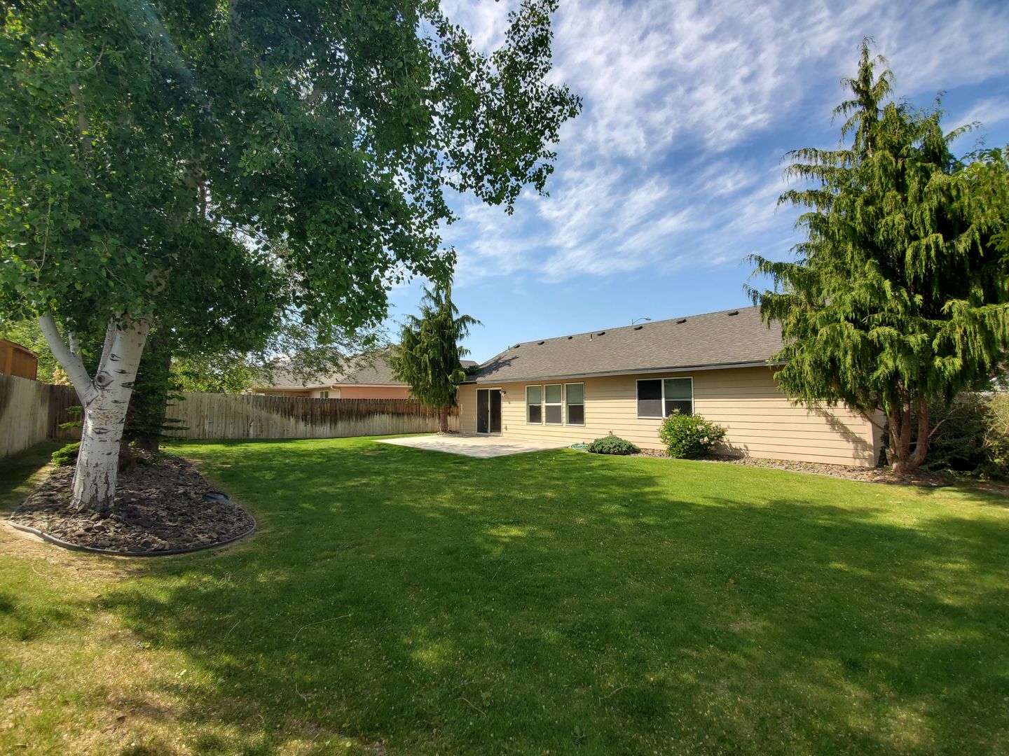 Master bedroom w/spacious walk in closet and private bath w/large shower only; Laundry room includes washer/dryer and direct access into spacious 2-car garage with automatic opener. Large fully fenced backyard with large patio and mature landscaping. Irrigation water is KID; Central-Air/Gas Heat.
