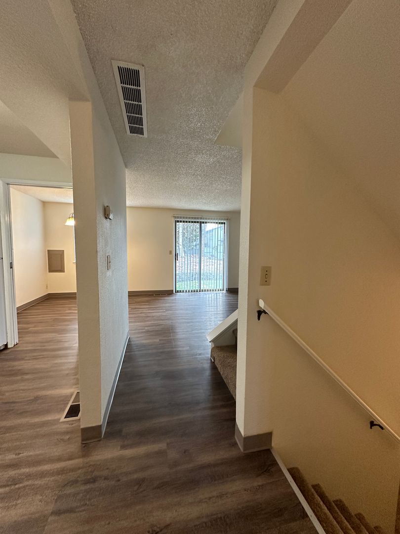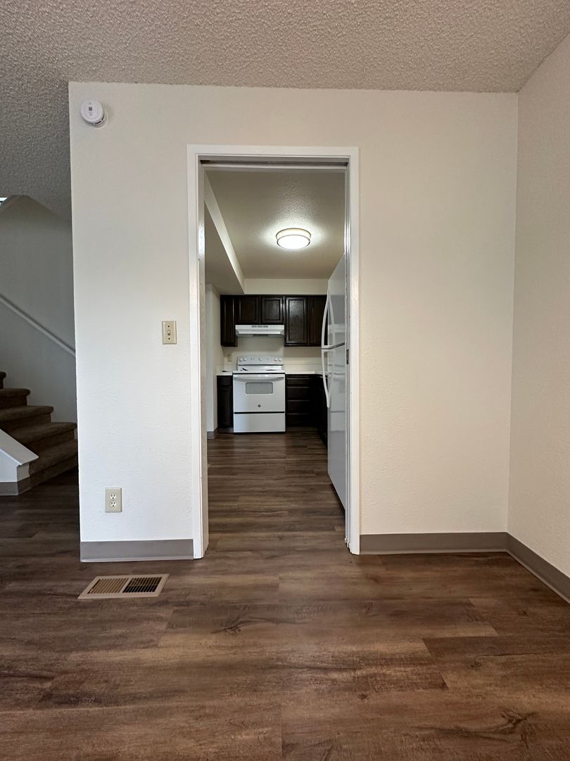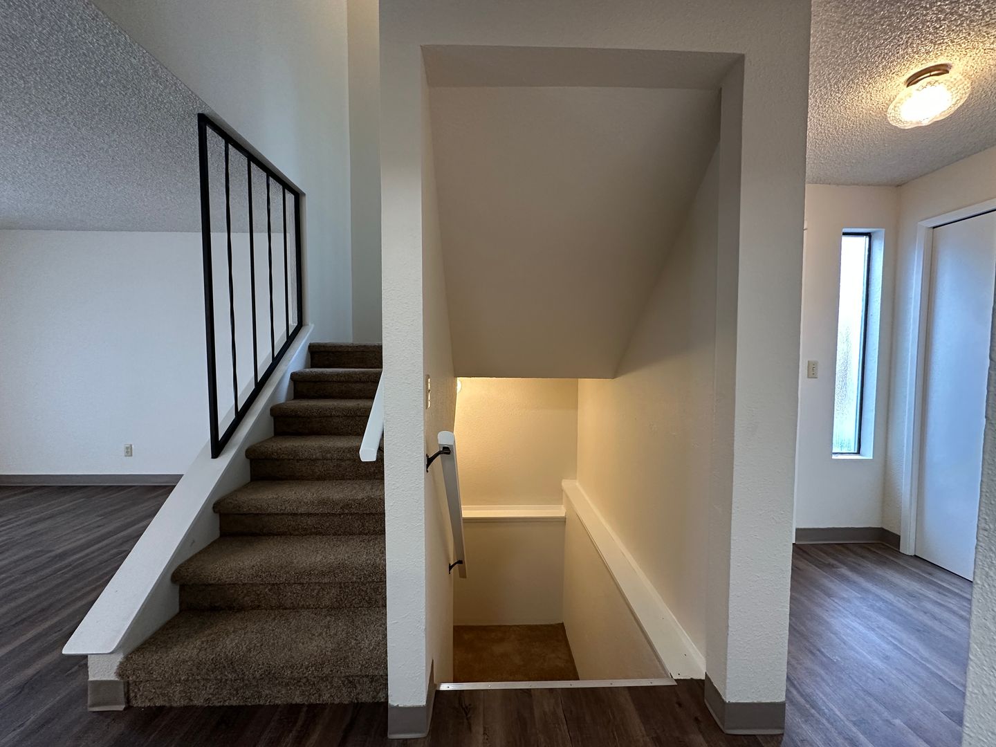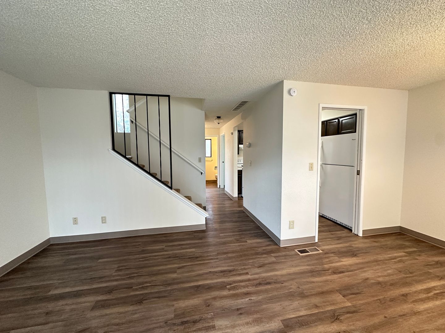 The main (entry) level of this 4 Bedroom, 2.5 Bathroom townhouse includes the kitchen, living room, half bathroom, and Laundry Room with Washer/Dryer Hookups.