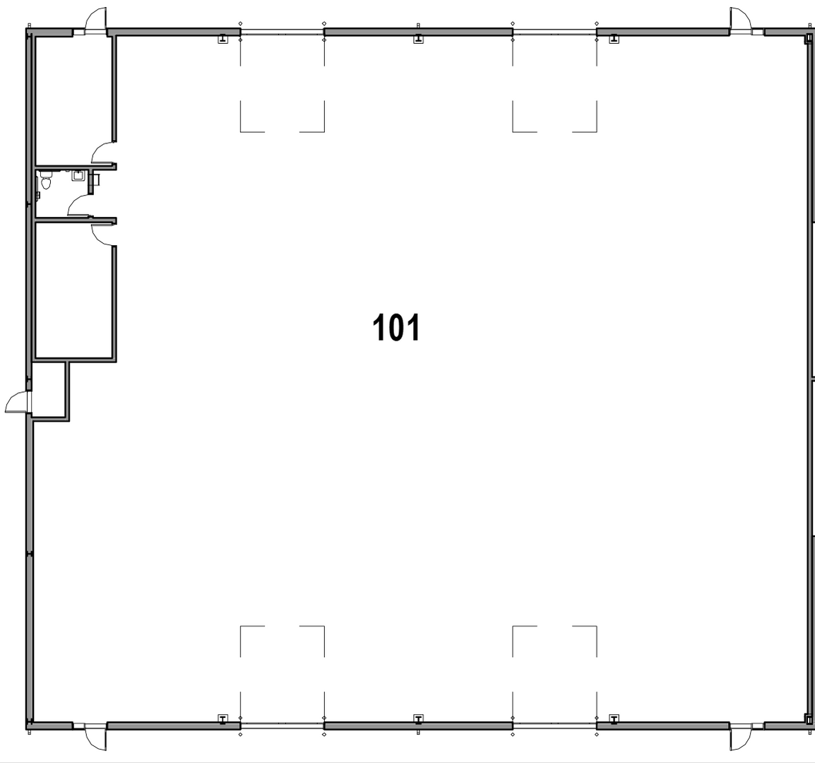 11,200 SF of space, including a storefront door with 2 offices, a restroom, and a double quad drive through unit warehouse with 4 14′ overhead doors that include automatic openers. The warehouse area has 3 additional man doors for access as well.