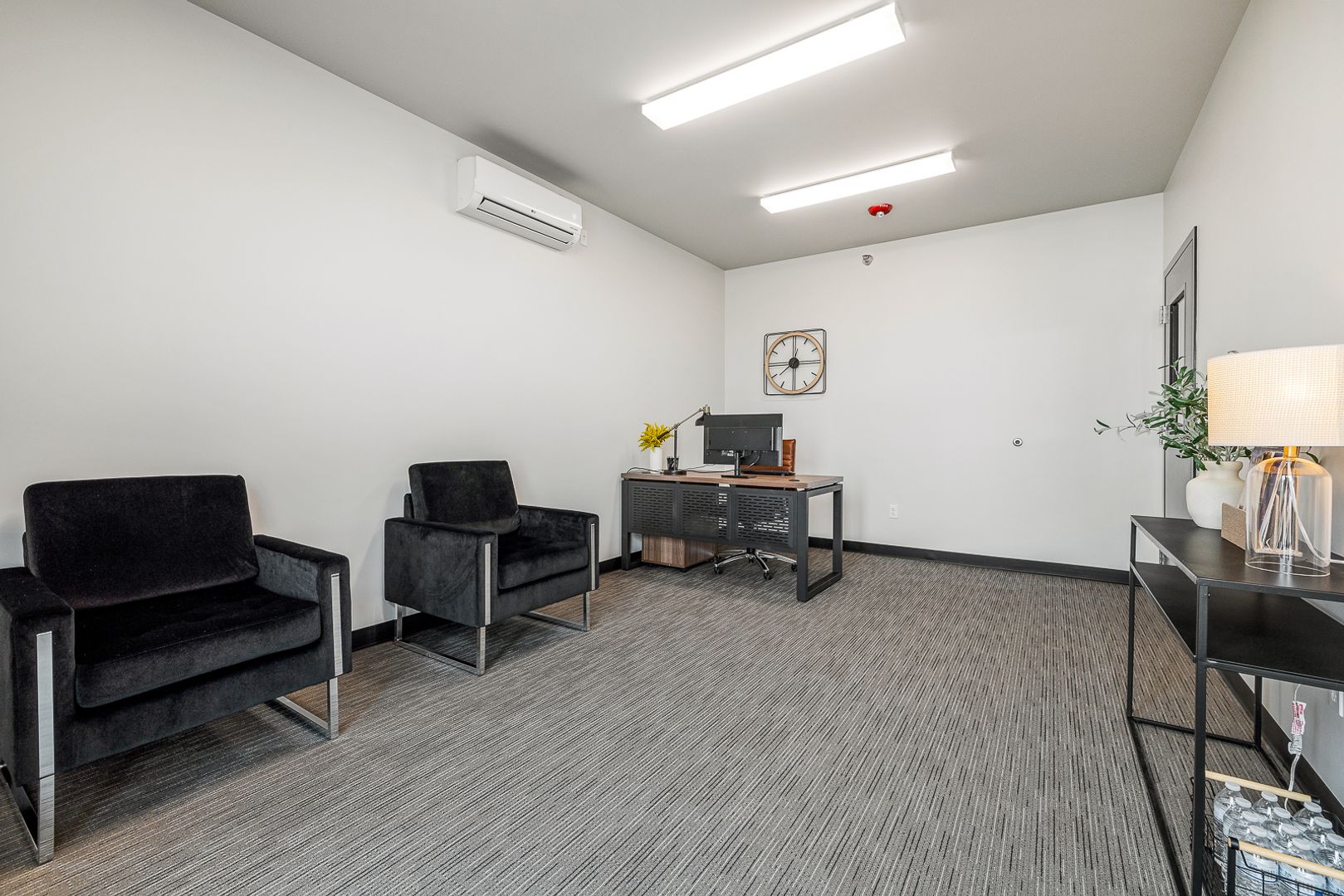 2,800 SF of space, including an office with a storefront door, a restroom, and a double side by side warehouse unit with a 14' overhead door that includes an automatic opener.