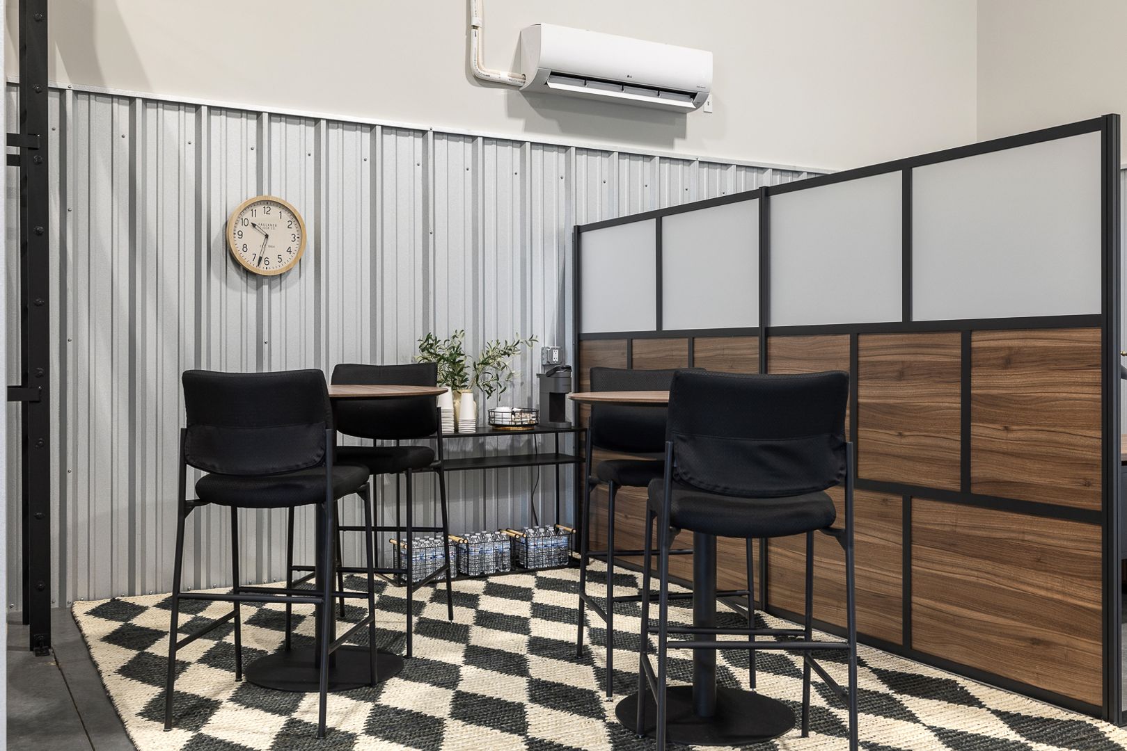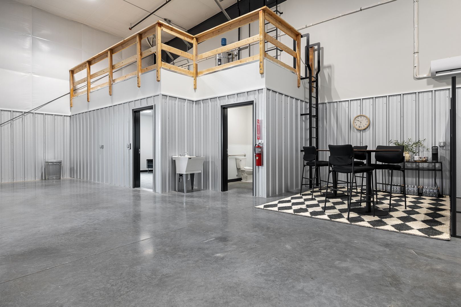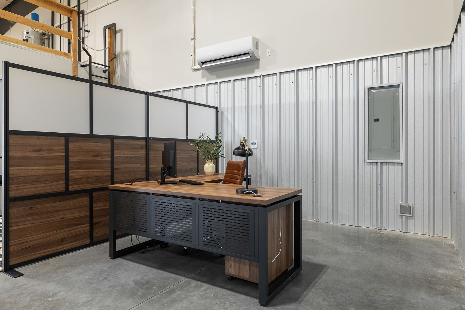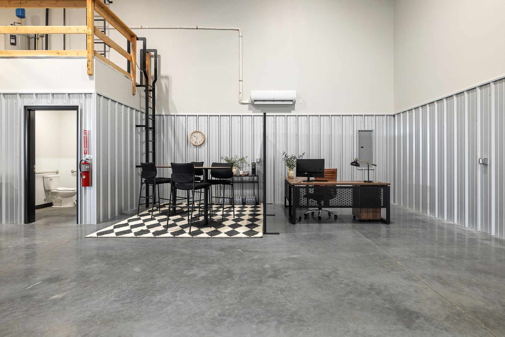3,360 SF of space, including an office with a storefront door, a restroom, and a double side by side warehouse unit with a 14' overhead door that includes an automatic opener. A back door also provides access to the fenced laydown yard.
