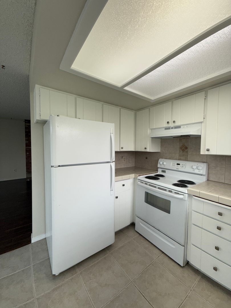 Updated 2-bedroom 1-bath. Real wood-burning fireplace in the living room. The patio is off the sliding glass door overlooking the large shared backyard.