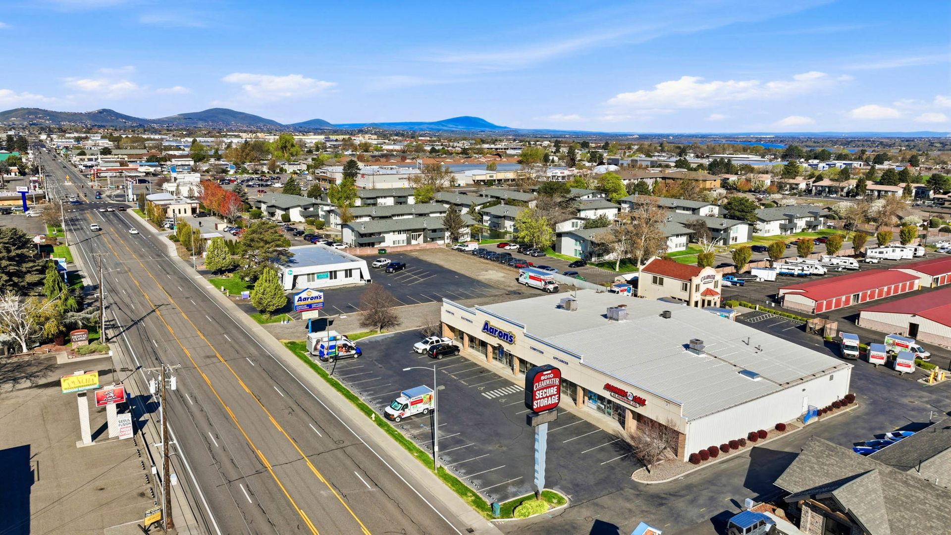 5020 W. Clearwater Ave. is a well-positioned retail building located along Clearwater Avenue, one of Kennewick’s primary commercial corridors. The property offers excellent visibility and access, with strong daily traffic counts of approximately 22,728 vehicles per day, providing consistent exposure for tenants. It is located within an established retail corridor surrounded by a mix of national, regional, and local businesses. The site is also conveniently located approximately 5 minutes from Highway 395, which sees over 57,000 vehicles per day, offering strong regional access.